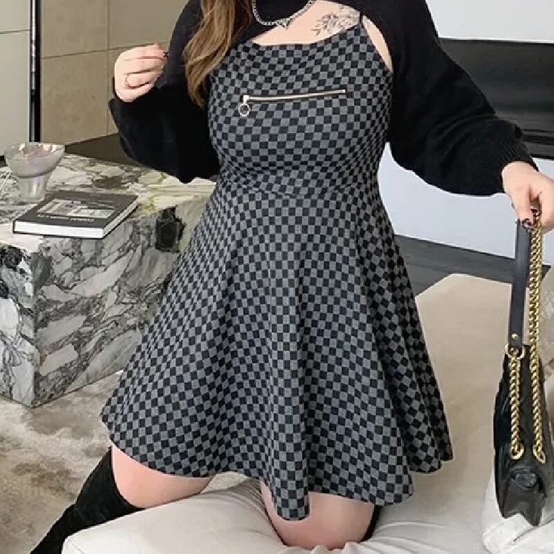 L ~ 4XL 送料無料 ノースリーブ チェック柄 ワンピース セクシー ドレス 大きいサイズ レディース 大きいサイズの店 海外 安い服 5l 4l 3l M1077