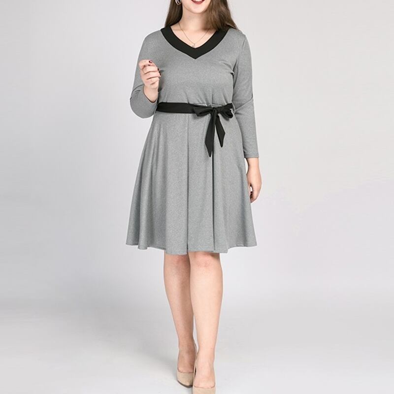 2XL - 8XL送料無料 長袖 vネック ウエスト スキニー カジュアル ドレス ワンピース 春 秋 大きいサイズ レディース 大きいサイズの店 海外 安い 服 8l 7l 6l 5l 4l 3l M1095