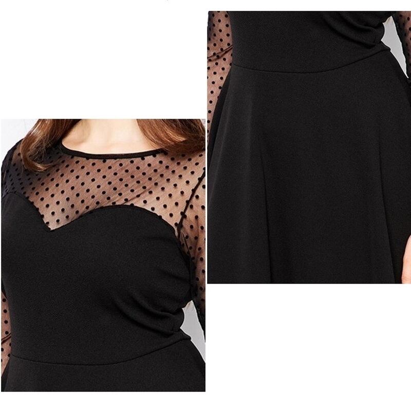 2XL - 8XL 送料無料 長袖 ドット レース ミドル スカート パーティー ドレス ゆったり 春 秋 大きいサイズ レディース 大きいサイズの店 海外 安い 服 8l 7l 6l 5l 4l 3l M1102