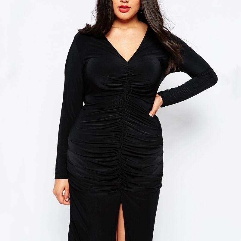 2XL - 8XL 送料無料 長袖 フリル Vネック ミッド スカート パーティー カジュアル ドレス 春 秋 大きいサイズ レディース 大きいサイズの店 海外 安い 服 8l 7l 6l 5l 4l 3l M1103