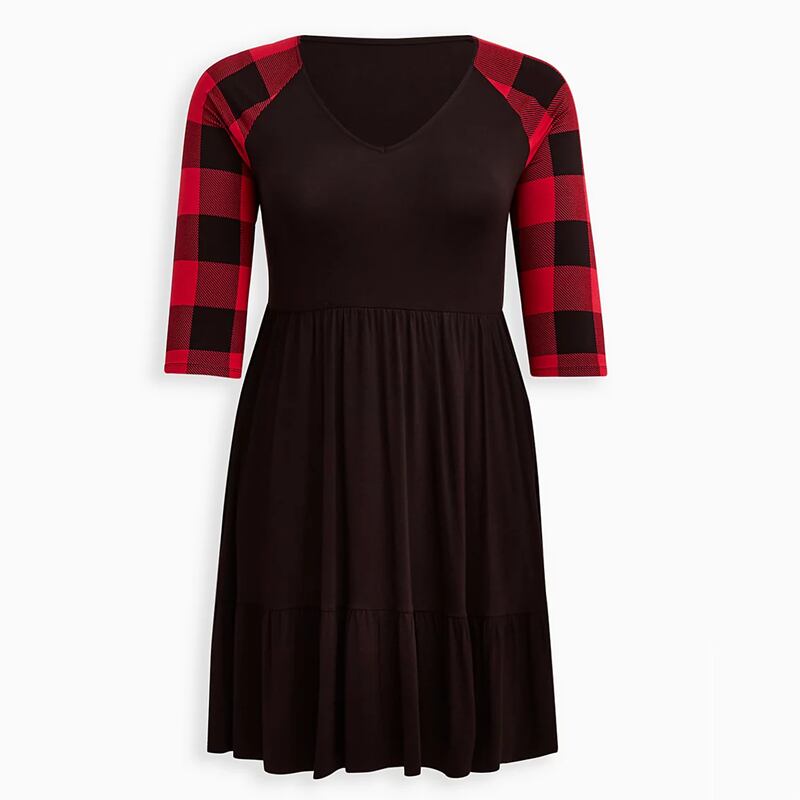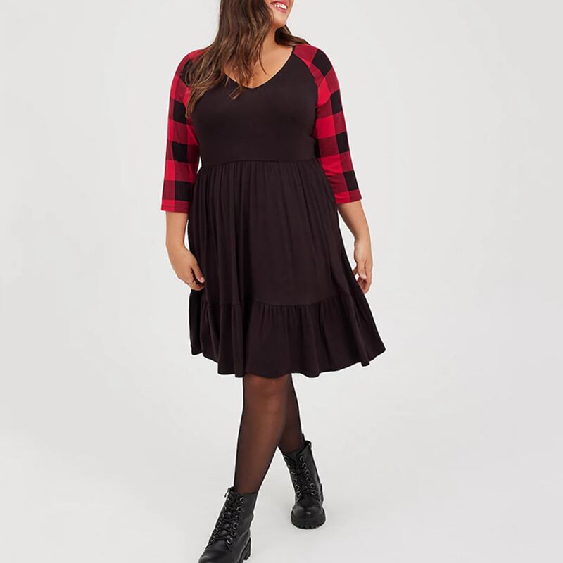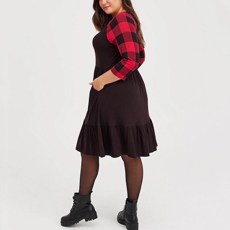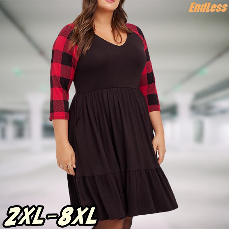 2XL - 8XL 送料無料 大きいサイズワンピース 七分袖 チェック柄 カジュアル ドレス ゆったりサイズ 春 秋 大きいサイズ レディース 大きいサイズの店 海外 安い 服 8l 7l 6l 5l 4l 3l M1119