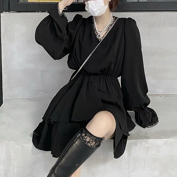 M - 4XL 送料無料 大きいドレス レース ステッチ 長袖 カジュアル シフォン ドレス ワンピース 春 秋 大きいサイズドレス ゆったりサイズ 大きいサイズ レディース 大きいサイズの店 海外 安い 服 8l 7l 6l 5l 4l 3l M1146