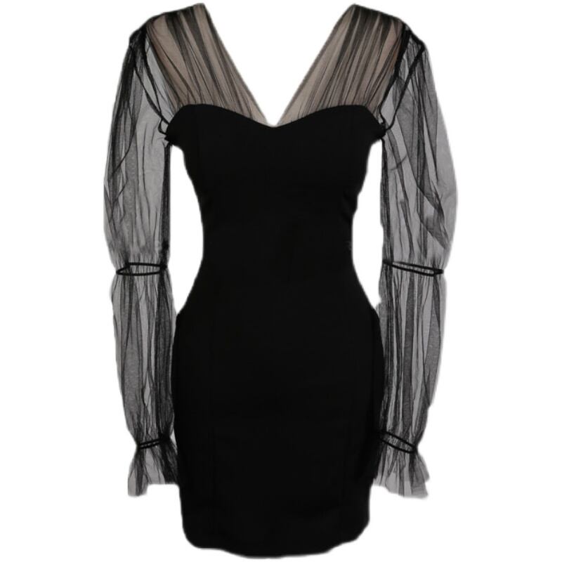 M - 4XL 送料無料 大きいドレス 長袖 シフォン Vネック ブラック セクシー カジュアル パーティー キャバ ドレス 大きいサイズのワンピース 大きいサイズドレス ゆったりサイズ 大きいサイズ レディース 大きいサイズの店 海外 安い 服 8l 7l 6l 5l 4l 3l M1179
