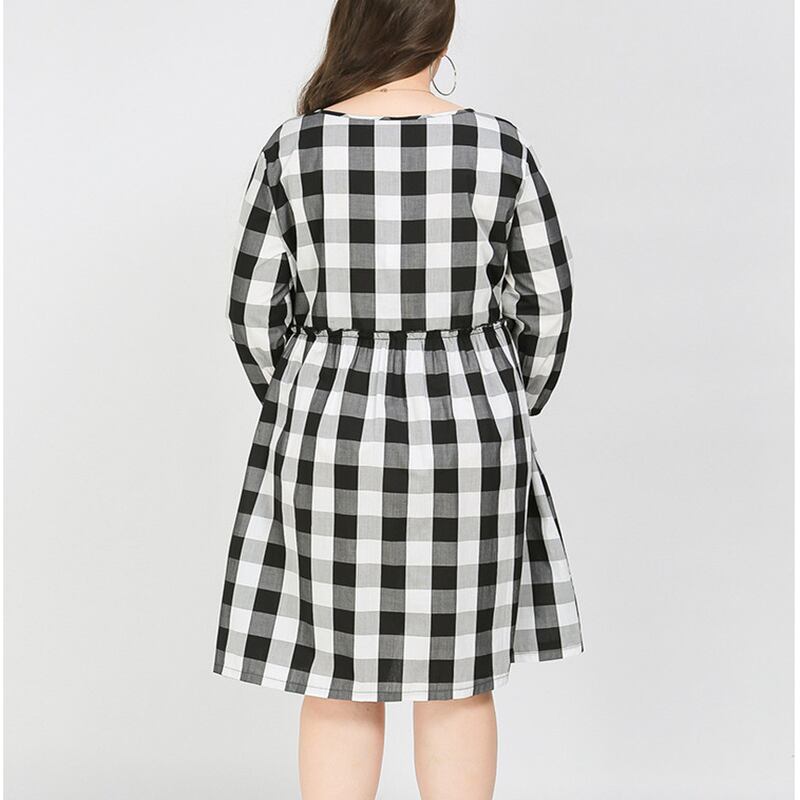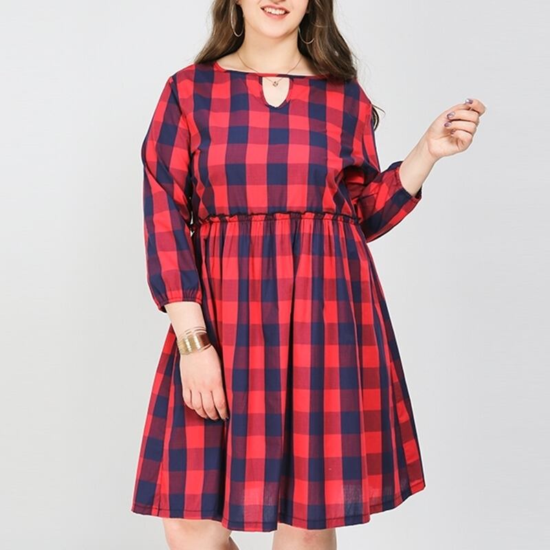 2XL - 8XL 送料無料 カジュアル チェック柄 七分袖 スリーブ 大きいサイズワンピース 安い 大きいサイズワンピース可愛い 大きいサイズワンピース秋 海外 通販 8l 7l 6l 5l 4l 3l M1200