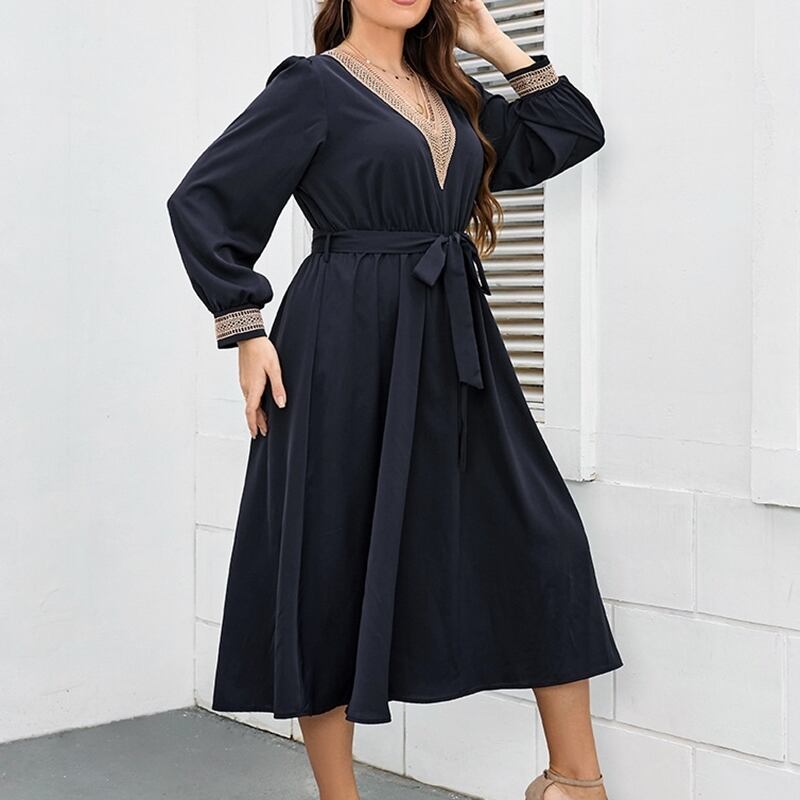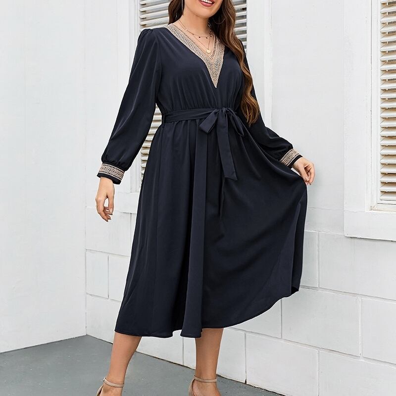 XL - 4XL 送料無料 プラスサイズ ロング カジュアル vネック ロング ドレス 大きいサイズワンピース 安い 大きいサイズワンピース可愛い 大きいサイズワンピース秋 海外 通販 8l 7l 6l 5l 4l 3l M1211