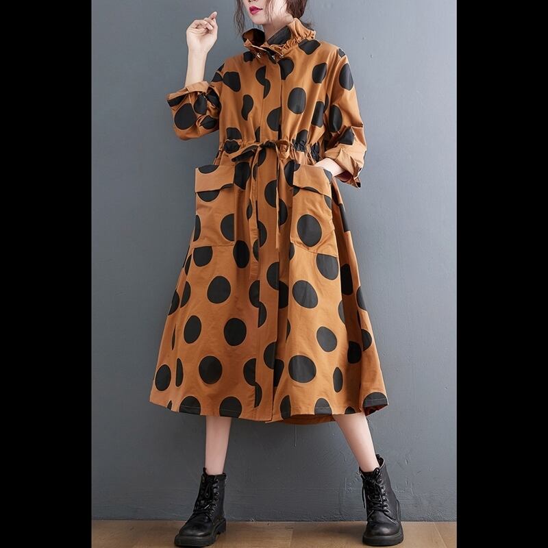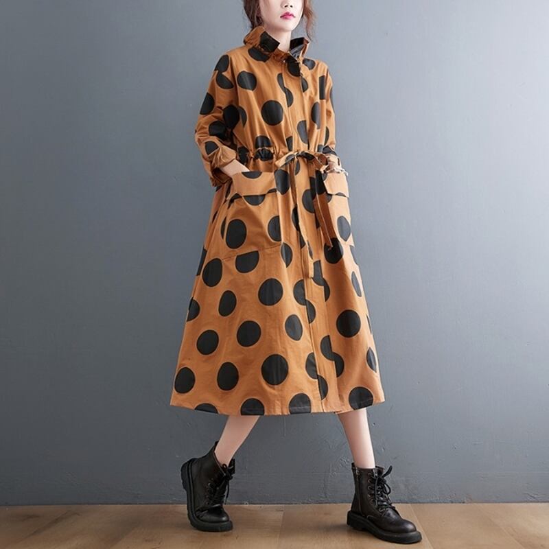 M - XL 送料無料 ドット 柄 ゆったり ミディアム丈 スカート トレンチ コート 安い 大きいサイズワンピース可愛い 大きいサイズワンピース 春 秋 海外 通販 8l 7l 6l 5l 4l 3l M1217