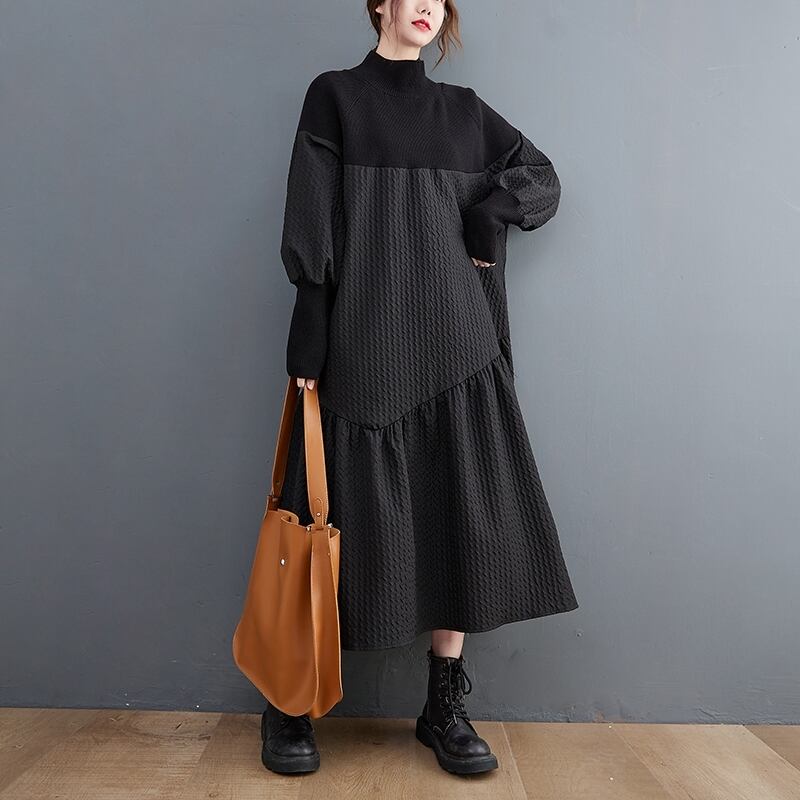 【 送料無料 】 ゆったり 長袖 ニット タートル フリル ロングスカート ワンピース 大人女子 安い 大きいサイズワンピース 可愛い 大きいサイズワンピース 春 秋 冬 海外 通販 8l 7l 6l 5l 4l 3l M1235
