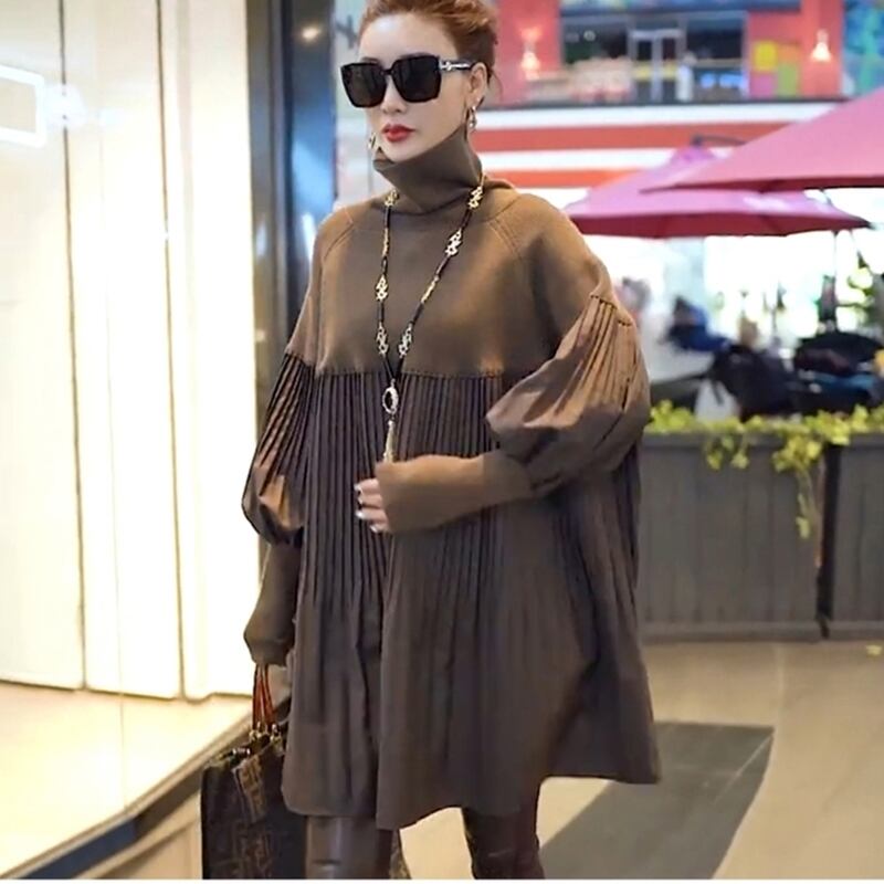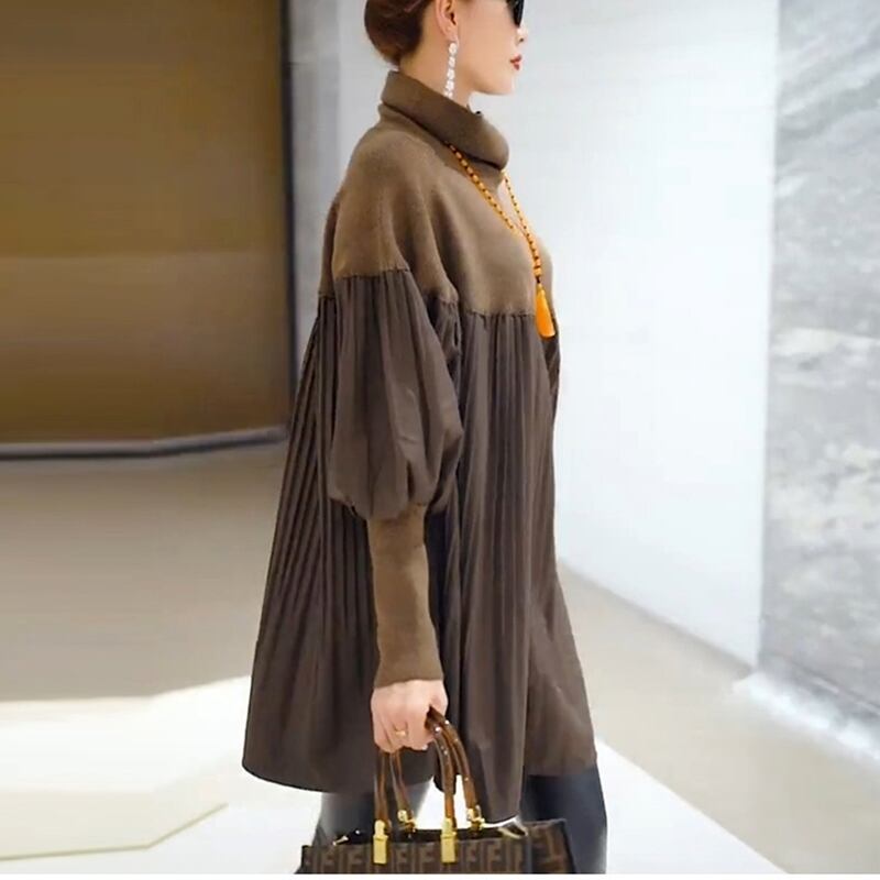 【 送料無料 】秋 冬 タートルネック ランタンスリーブ 長袖 セーター ヴィンテージ ドレス シャツ ルーズ 大人女子 安い 大きいサイズワンピース 可愛い 大きいサイズワンピース 大きいサイズ 春 秋 冬 海外 通販 8l 7l 6l 5l 4l 3l M1265