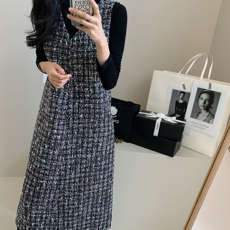 ♦チェック柄 秋 冬 ロングベストワンピースです。
