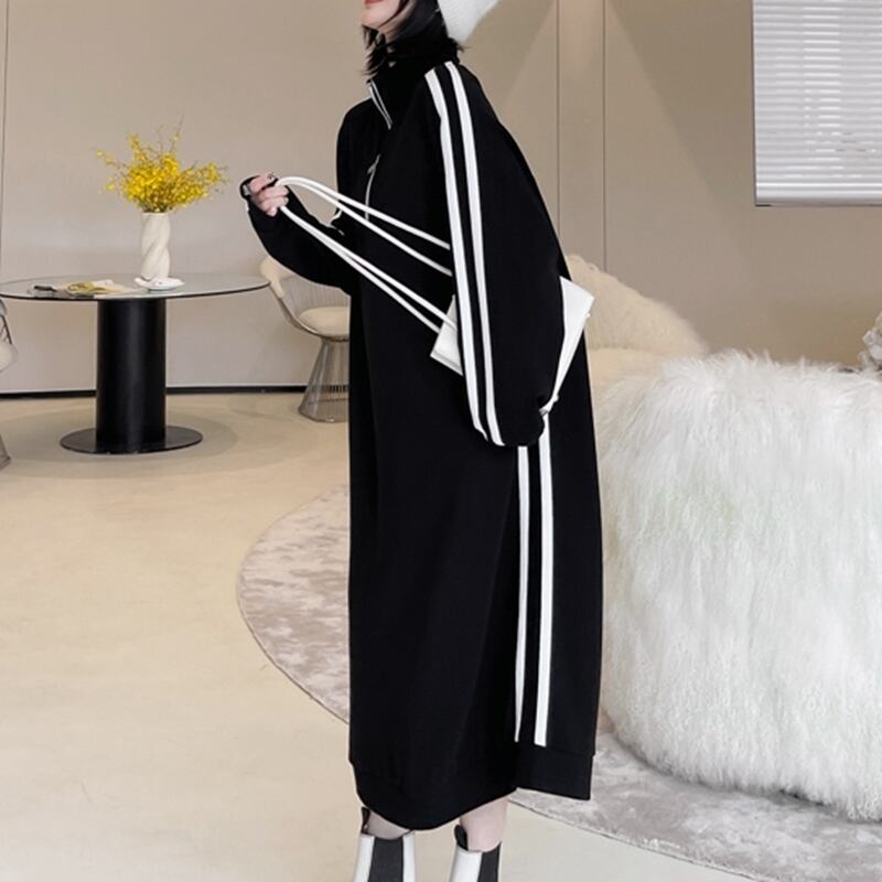 【 送料無料 】ロング ストライプ 長袖 スエード カジュアル ドレス 大人女子 安い 大きいサイズワンピース 可愛い 大きいサイズワンピース 大きいサイズ 春 秋 冬 海外 通販 8l 7l 6l 5l 4l 3l M1272