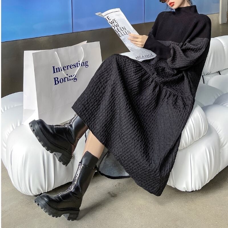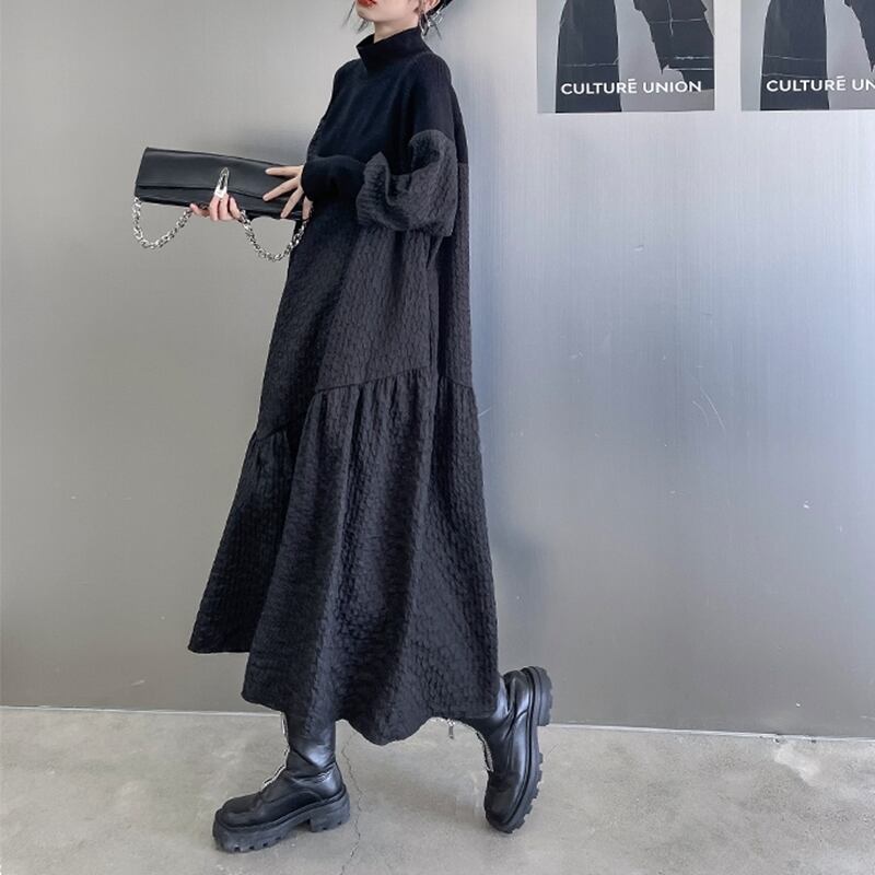 【 送料無料 】長袖 ヴィンテージ ニット タートルネック ドレス ワンピース ブラック 大人女子 安い 大きいサイズワンピース 可愛い 大きいサイズワンピース 大きいサイズ 春 冬 秋 海外 通販 8l 7l 6l 5l 4l 3l M1325