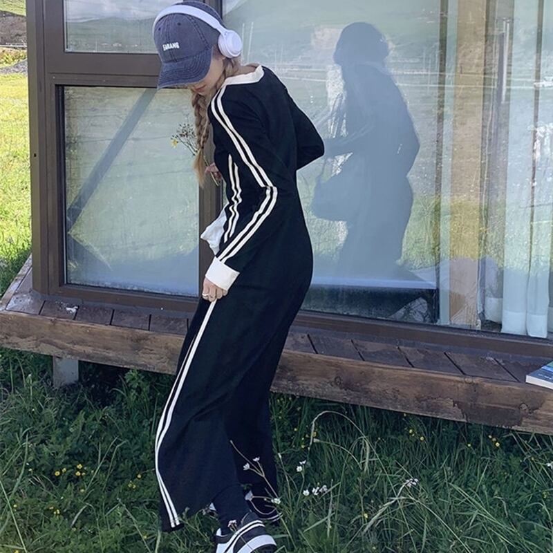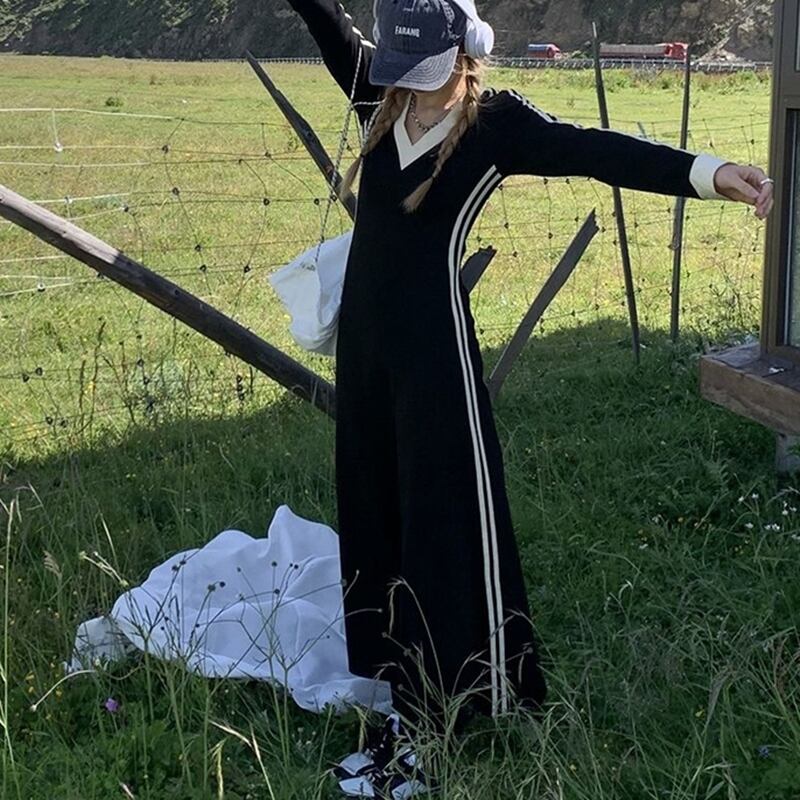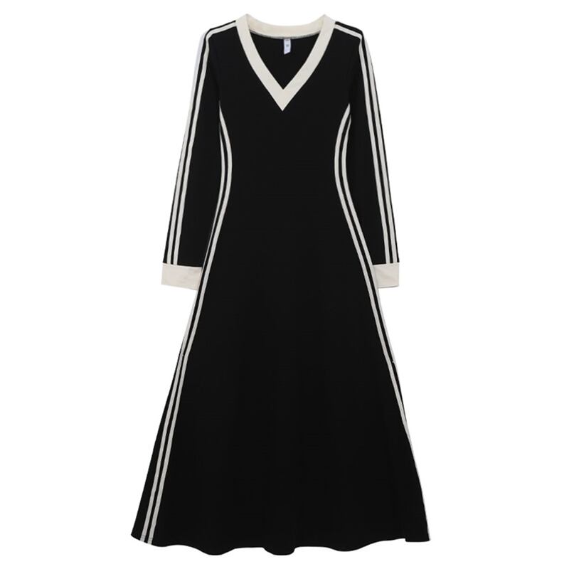 【 送料無料 】長袖 vネック ウエスト スキニー カジュアル ゆったり ワンピース ブラック 秋 春 大人女子 安い 大きいサイズワンピース 可愛い 大きいサイズワンピース 大きいサイズ 海外 通販 8l 7l 6l 5l 4l 3l M1351