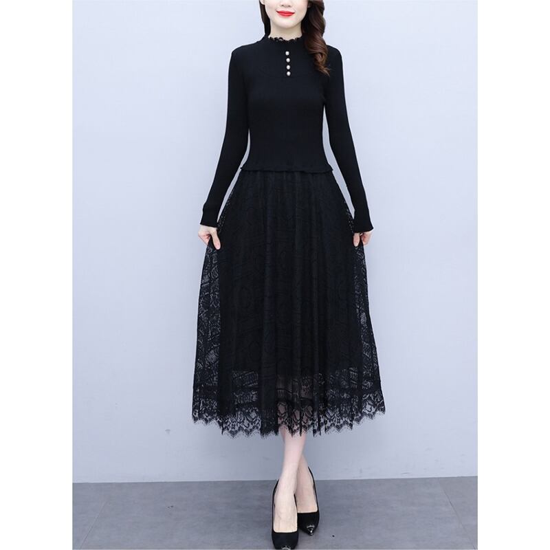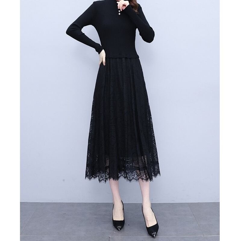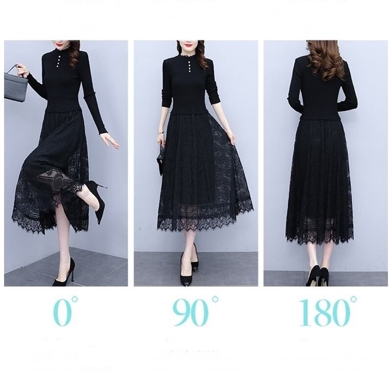 【 送料無料 】 長袖 ロング ハイネック ブラック レース ニット ドレス ワンピース 黒 結婚式 ニットワンピース ニットワンピ タイトコーデ 新品 海外 通販 大きいサイズ レディース 8l 7l 6l 5l 4l 3l M1369
