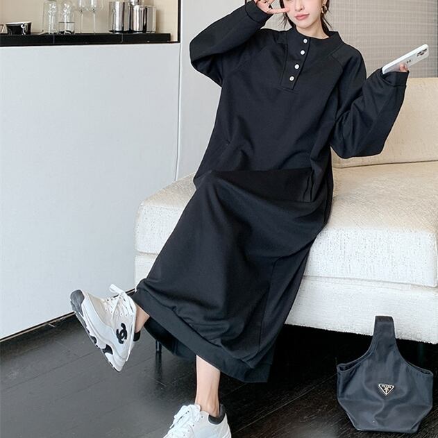 【 送料無料 】 ハーフ ハイネック ルーズ スウェット ロング ワンピース シンプル 黒 かわいい 可愛い 人気 新品 海外 店舗 通販 大きいサイズ レディース 8l 7l 6l 5l 4l 3l M1375
