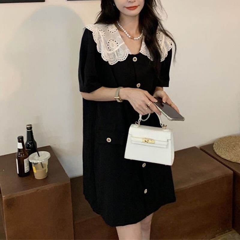 【 送料無料 】 特大サイズ レース襟 半袖 ミニ スカート ドレス 夏 大人 重ね着 セットアップ きれいめ ゆったり 安い おしゃれ かわいい 可愛い 人気 新品 海外 店舗 通販 大きいサイズ レディース 8l 7l 6l 5l 4l 3l M1398