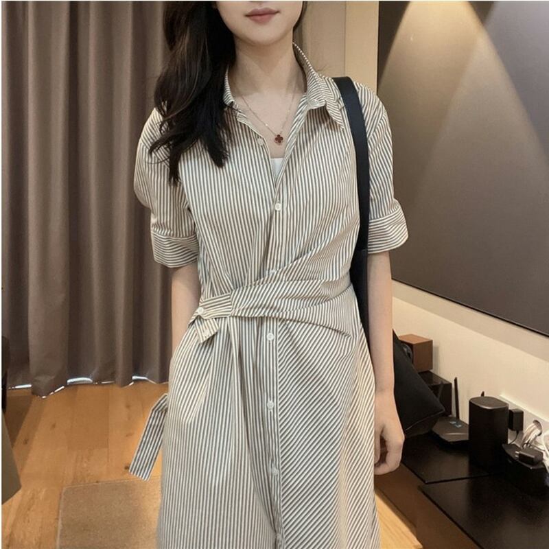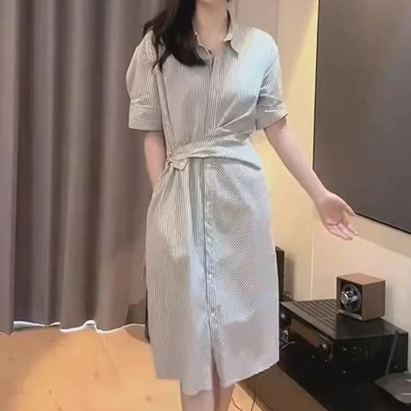 【 送料無料 】 レースアップ 半袖 シャツ スカート ロングスカート ストライプ 細見え カジュアル ドレス ワンピース 夏 大人 重ね着 セットアップ きれいめ ゆったり 安い おしゃれ かわいい 可愛い 人気 新品 海外 店舗 通販 大きいサイズ レディース 8l 7l 6l 5l 4l 3l M1408