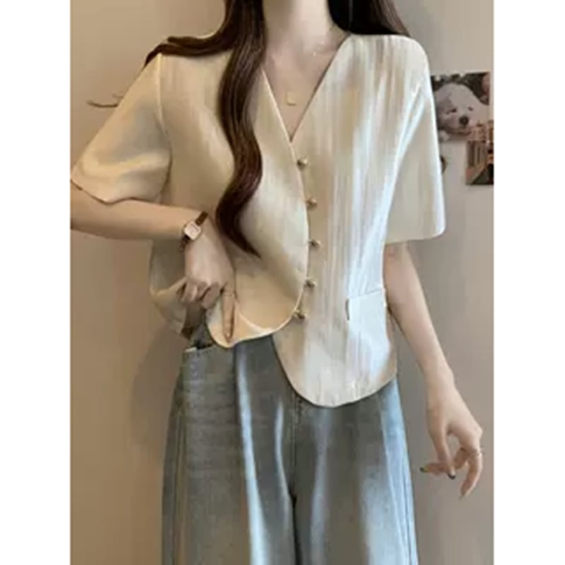 【 送料無料 】 プラスサイズ ウエストカバー ボタン シャツ 半袖 トップス 夏 大人 重ね着 セットアップ きれいめ ゆったり 安い おしゃれ かわいい 可愛い 人気 新品 海外 店舗 通販 大きいサイズ レディース 8l 7l 6l 5l 4l 3l M1411
