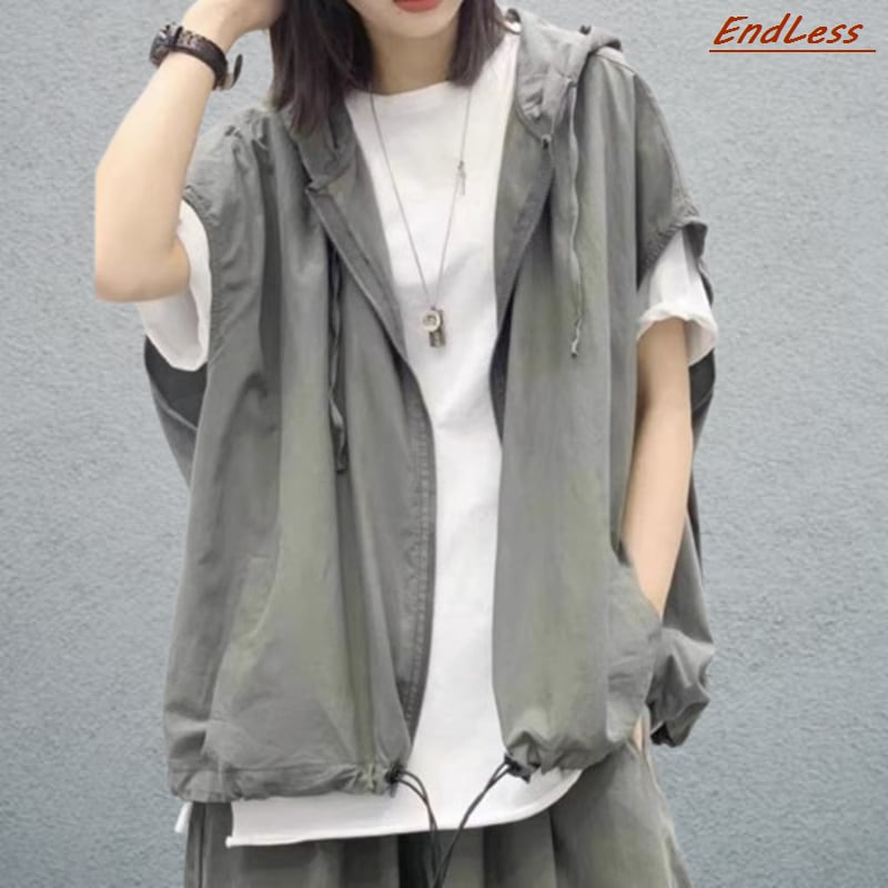 【 送料無料 】サマー ベスト ジャケット フード付き ノースリーブ 夏 黒 大人 重ね着 セットアップ きれいめ ゆったり 安い おしゃれ かわいい 可愛い 人気 新品 海外 店舗 通販 大きいサイズ レディース 8l 7l 6l 5l 4l 3l M1421
