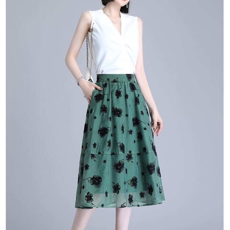【 送料無料 】 プラスサイズ 花柄 ミドル丈 スカート 夏 春 黒 大人 重ね着 セットアップ きれいめ ゆったり 安い おしゃれ かわいい 可愛い 人気 新品 海外 店舗 通販 大きいサイズ レディース 8l 7l 6l 5l 4l 3l M1460