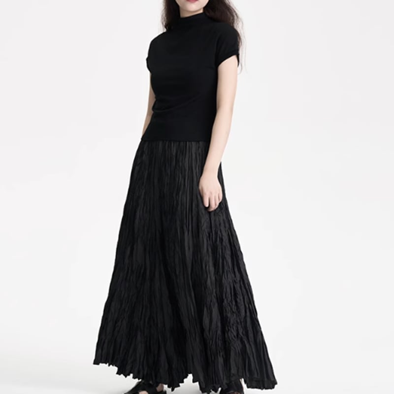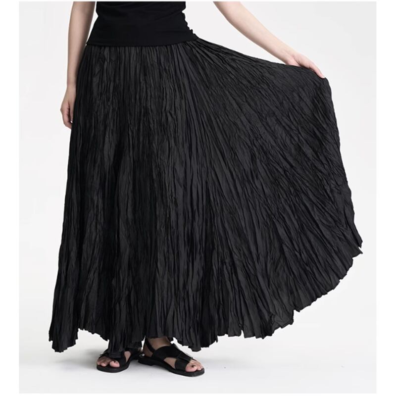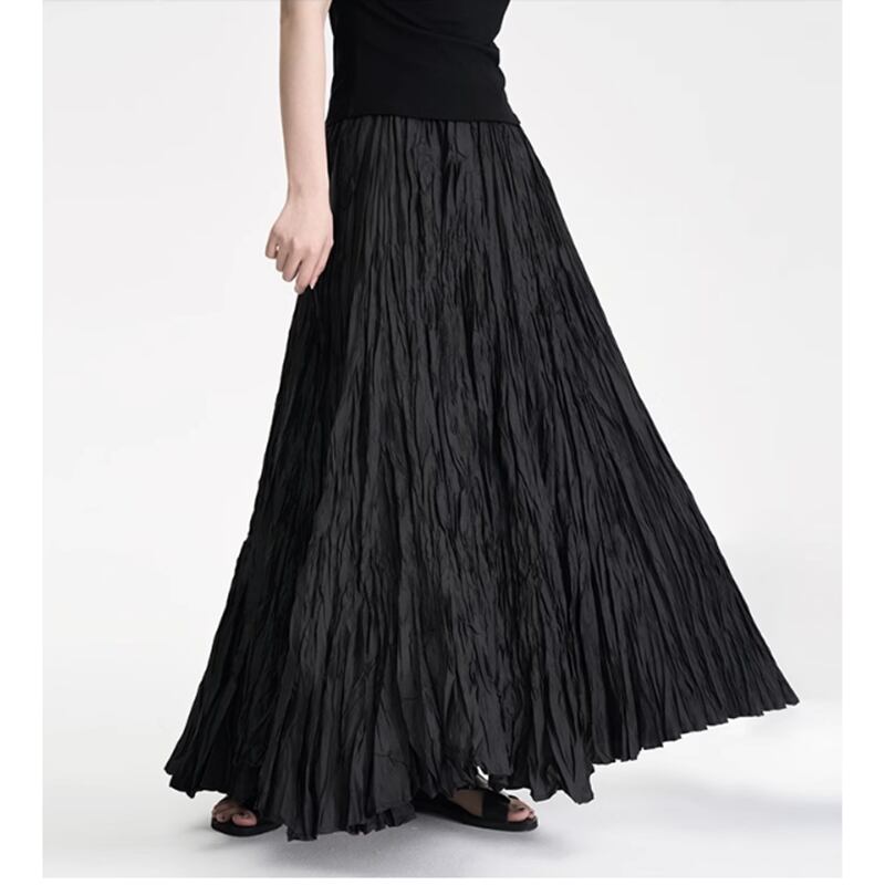 【 送料無料 】 プラスサイズ ブラック ロング スカート しわ 夏 秋 黒 大人 重ね着 セットアップ きれいめ ゆったり 安い おしゃれ かわいい 可愛い 人気 新品 海外 店舗 通販 大きいサイズ レディース 8l 7l 6l 5l 4l 3l M1461
