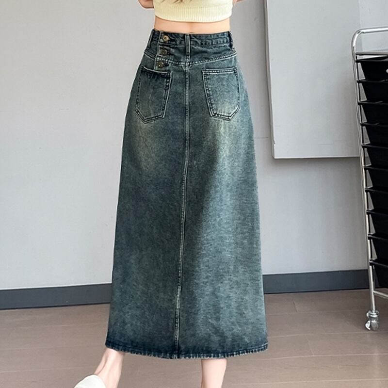 【 送料無料 】 プラスサイズ レトロ デニム ルーズ スカート スリット 夏 大人 重ね着 セットアップ きれいめ ゆったり 安い おしゃれ かわいい 可愛い 人気 新品 海外 店舗 通販 大きいサイズ レディース 8l 7l 6l 5l 4l 3l M1468