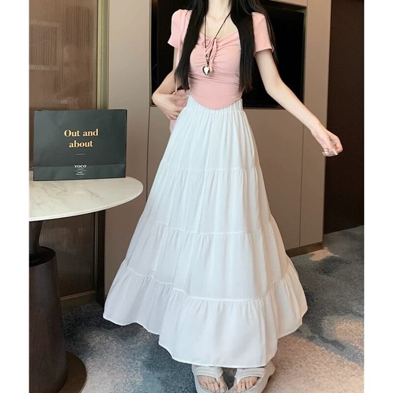 【 送料無料 】 プラスサイズ ルーズ フリル プリーツ ロングスカート 夏 大人 重ね着 セットアップ きれいめ ゆったり 安い おしゃれ かわいい 可愛い 人気 新品 海外 店舗 通販 大きいサイズ レディース 8l 7l 6l 5l 4l 3l M1469