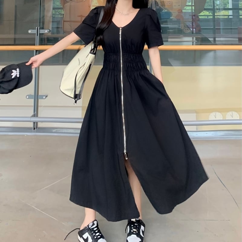【 送料無料 】 カジュアル 半袖 ジッパー ロング ワンピース ドレス 夏 大人 重ね着 セットアップ きれいめ ゆったり 安い おしゃれ かわいい 可愛い 人気 新品 海外 店舗 通販 大きいサイズ レディース 10l 9l 8l 7l 6l 5l 4l 3l M1495
