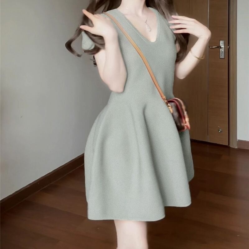 【 送料無料 】 フレンチ Vネック 半袖 ニット ドレス ワンピース サマー 夏 10l 9l 8l 7l 6l 5l 4l 3l M1502