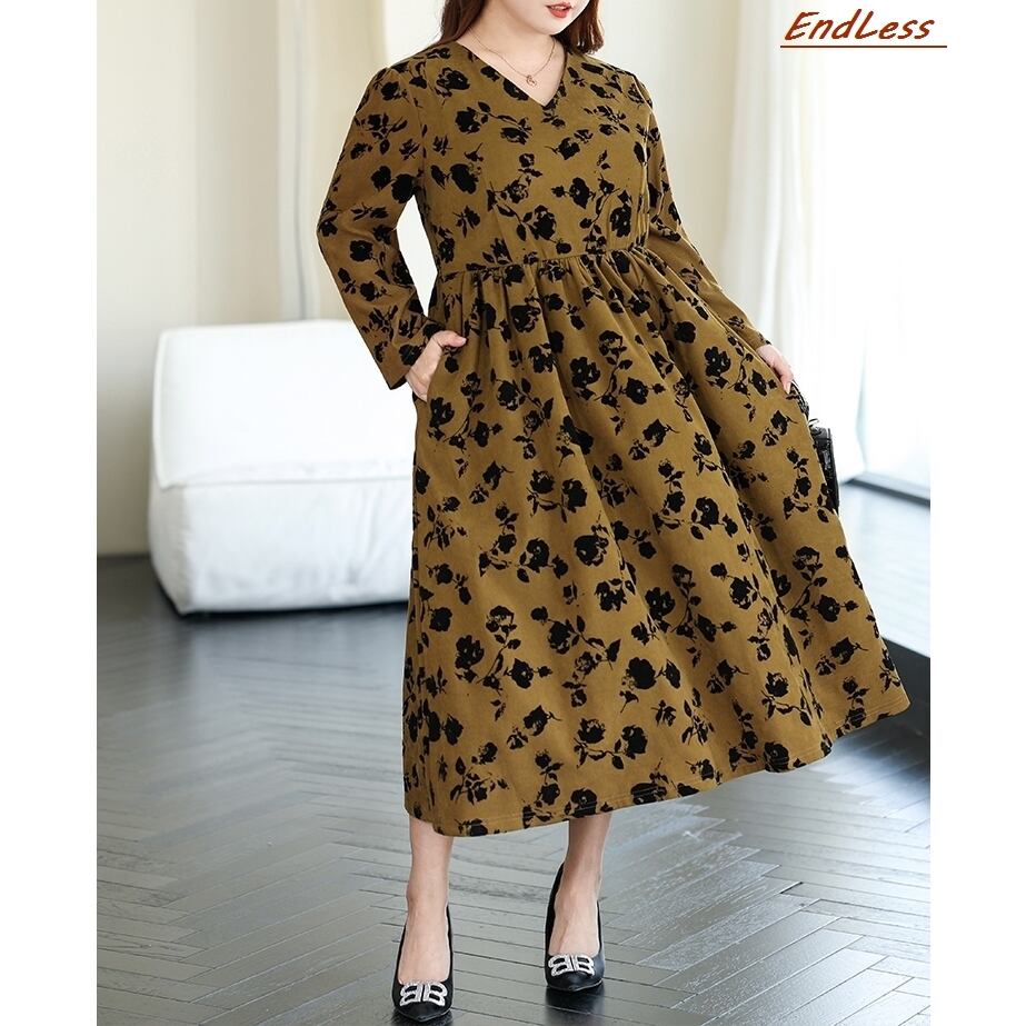 【 送料無料 】 プラスサイズ 長袖 花柄 カジュアル ドレス 春 秋 黒 大きいサイズ レディース 大きいサイズの店 ワンピース 安い 海外 店舗 お店 かわいい 演奏会 10l 9l 8l 7l 6l 5l 4l 3l M1523