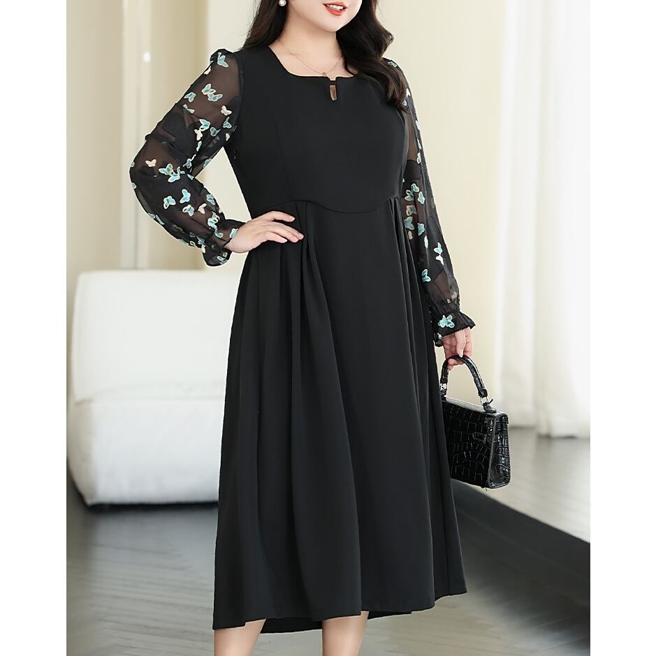 【 送料無料 】 プラスサイズ 長袖 花柄 カジュアル ドレス 春 秋 黒 大きいサイズ レディース 大きいサイズの店 ワンピース 安い 海外 店舗 お店 かわいい 演奏会 10l 9l 8l 7l 6l 5l 4l 3l M1524