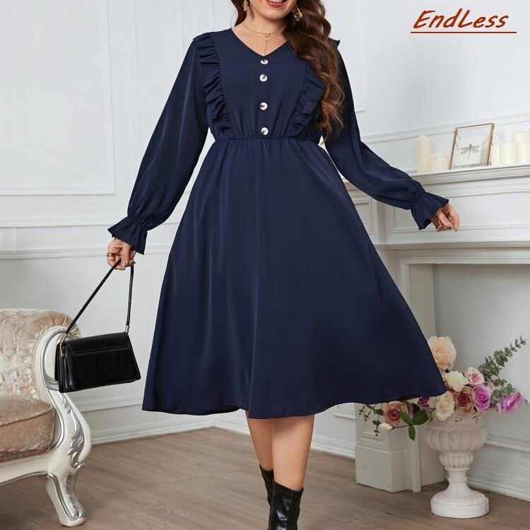 【 送料無料 】 プラスサイズ 長袖 Vネック フリル ワンピース カジュアル ドレス 春 秋 黒 大きいサイズ レディース 大きいサイズの店 ワンピース 安い 海外 店舗 お店 かわいい 演奏会 きれいめ 可愛い 50代 10l 9l 8l 7l 6l 5l 4l 3l M1527