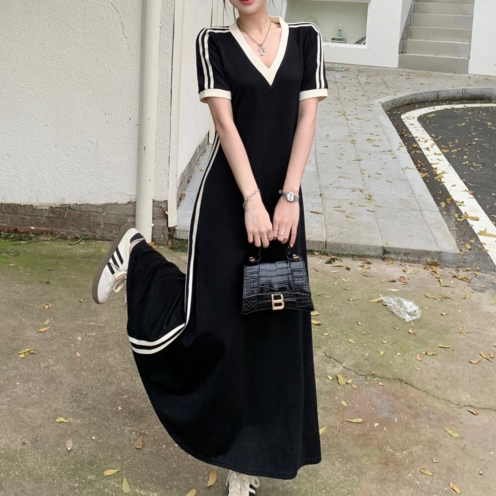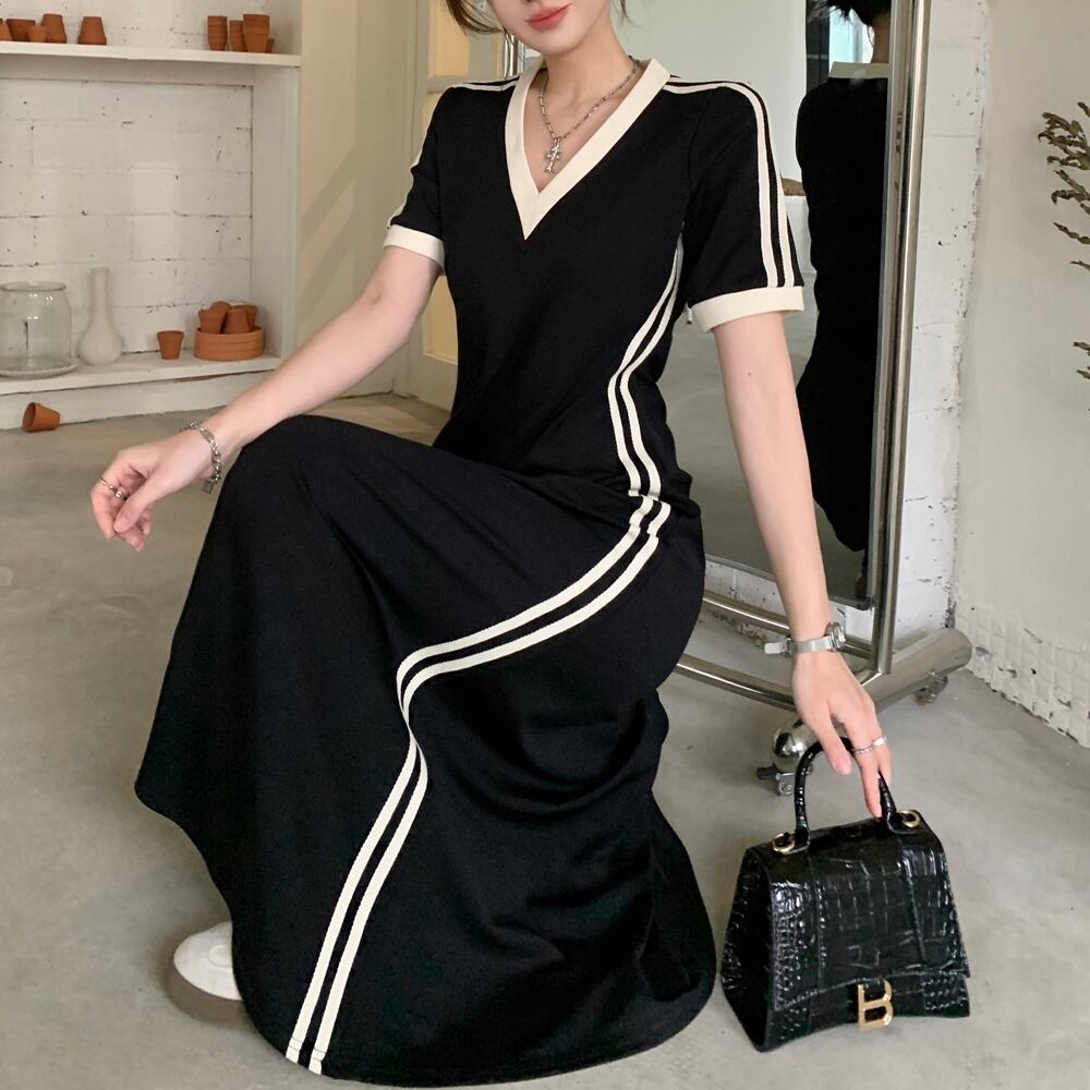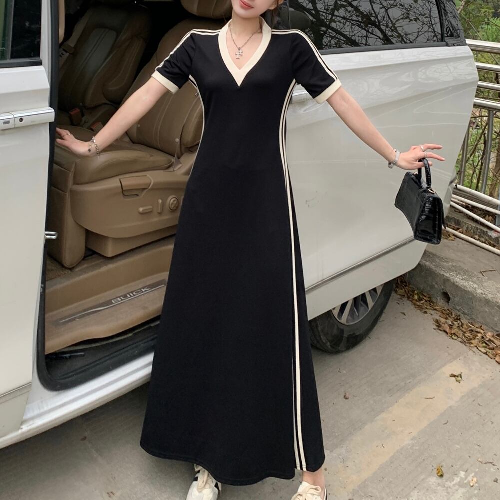 半袖 Vネック ライン カジュアル ドレス
