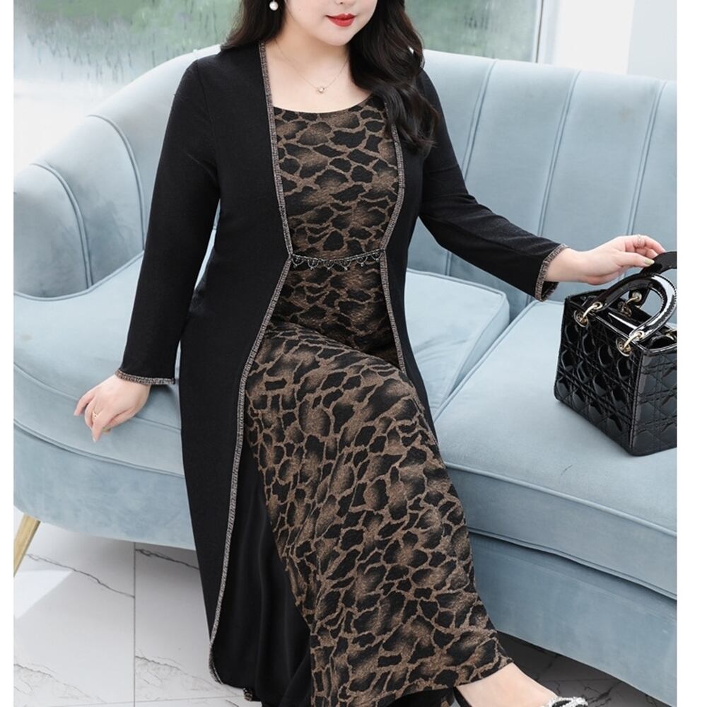 【 送料無料 】 特大サイズ 長袖 ヒョウ柄 ロング パーティー ドレス 春 秋 大きいサイズ レディース 大きいサイズの店 ワンピース 安い 海外 店舗 演奏会 結婚式 黒 イベント タイト ダンス かわいい お呼ばれ 二次会 10l 9l 8l 7l 6l 5l 4l 3l M1571