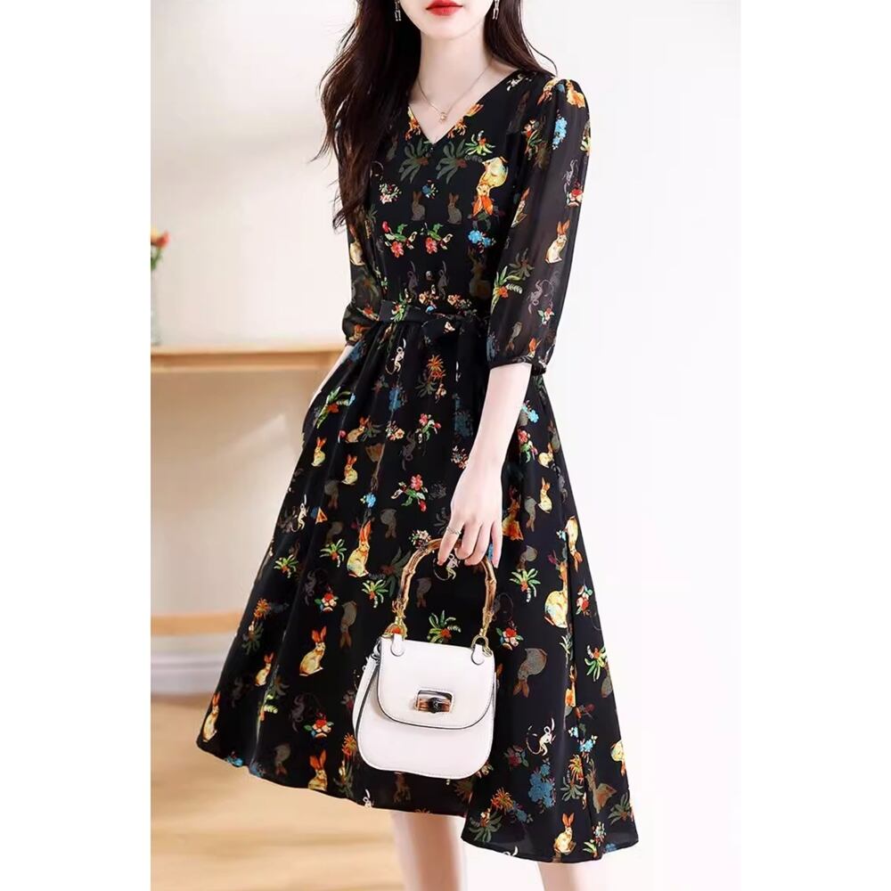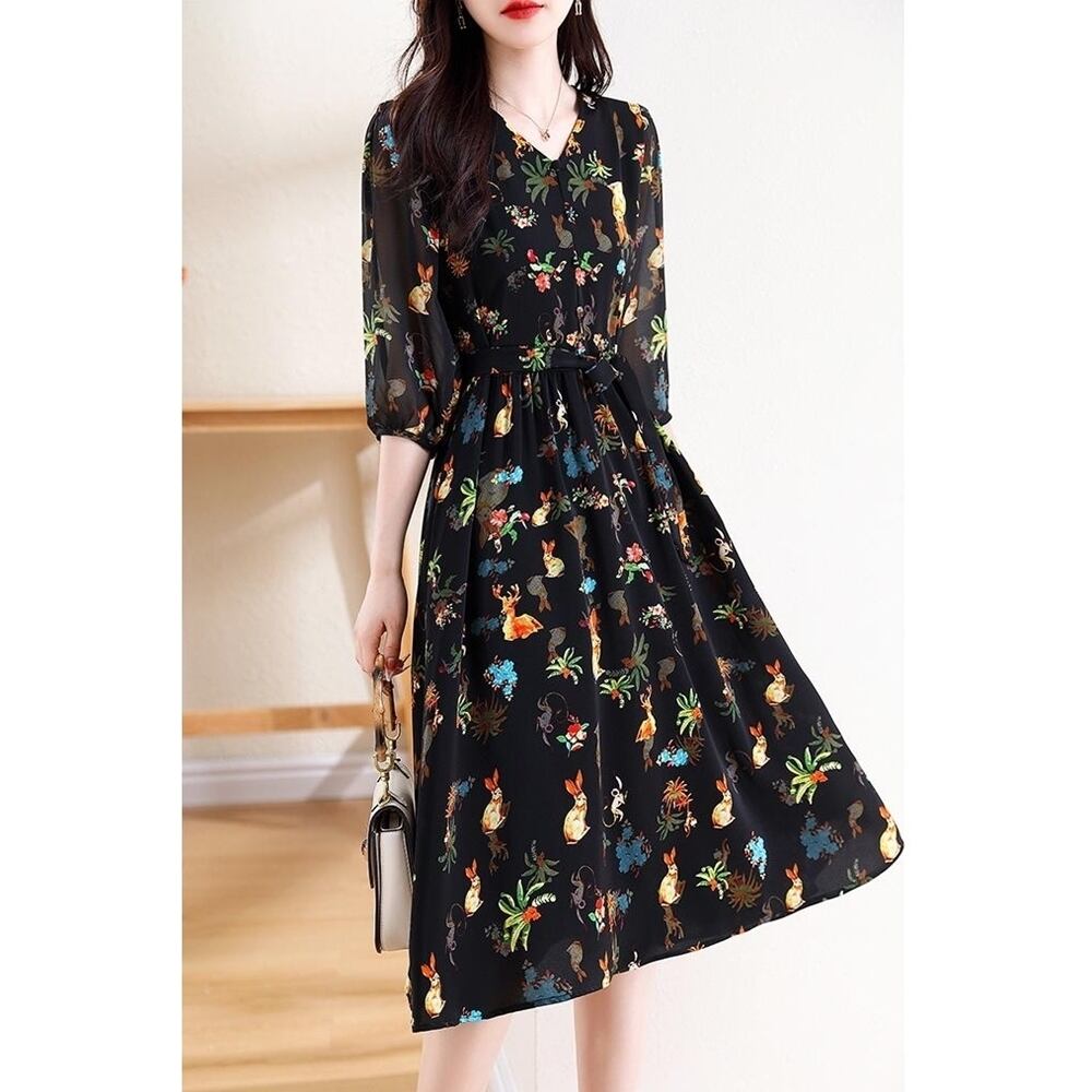 【 送料無料 】プラスサイズ 花柄 Vネック 半袖 カジュアル ドレス ワンピース 大きいサイズ レディース 大きいサイズの店 安い 海外 店舗 演奏会 結婚式 黒 タイト 大人っぽい アウター 10l 9l 8l 7l 6l 5l 4l 3l M1590