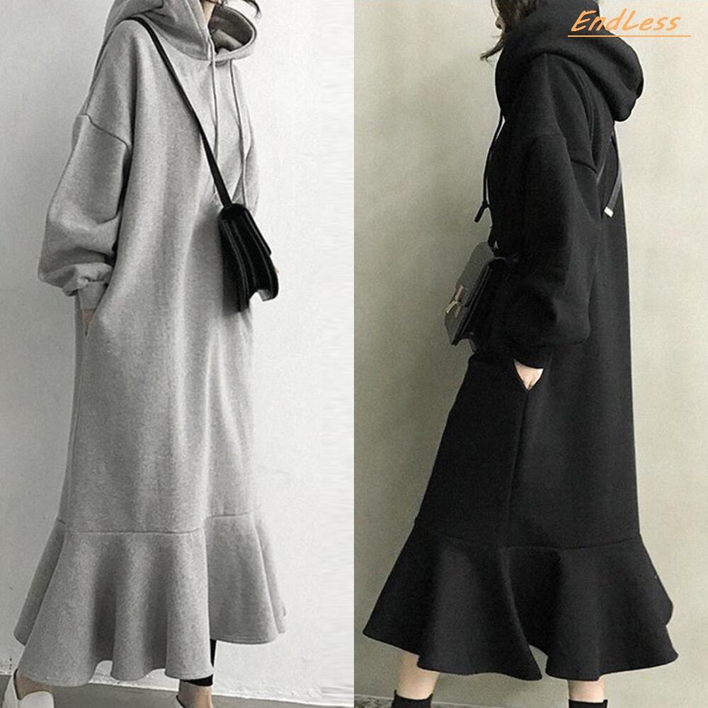 【 送料無料 】 フリルスカートフード付き スウェット コットン ロング ワンピース 黒 服 秋 冬 レディース 大きいサイズの店 安い 海外 店舗 4xl かっこいい セットアップ 10l 9l 8l 7l 6l 5l 4l 3l M1616