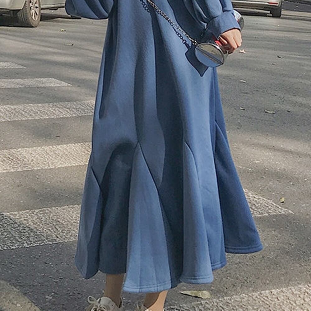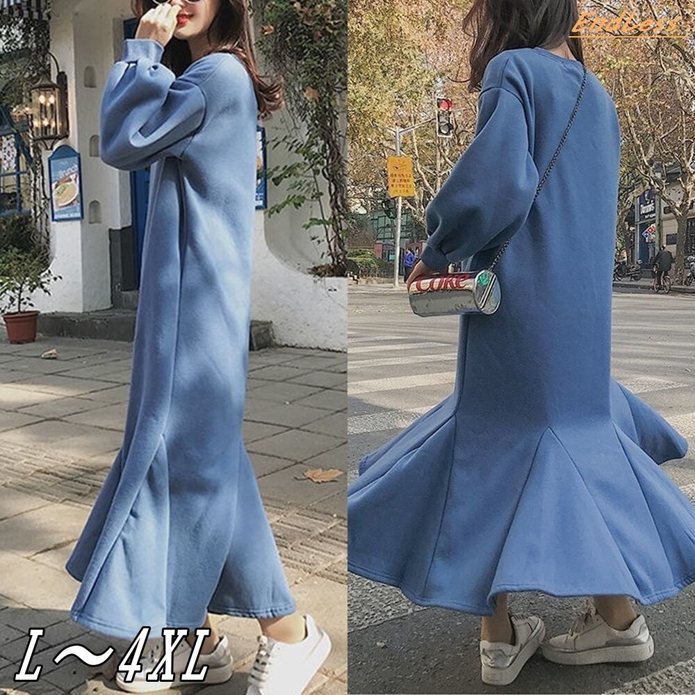【L~4XL】 大きいサイズ カジュアル ロング 長袖 ドレス ワンピース