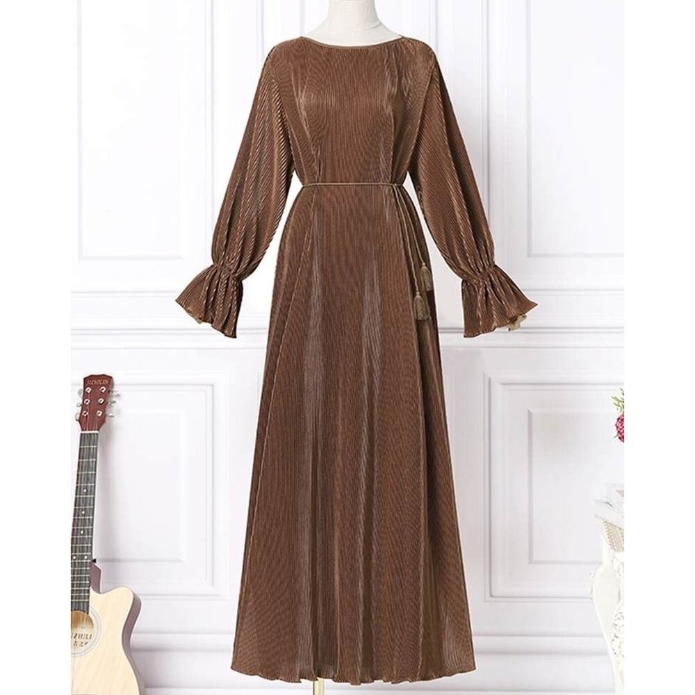 【S~XL】 大きめサイズ 長袖 スウィング スカート ドレス