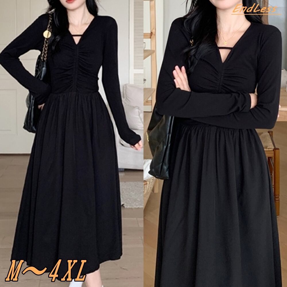 【 送料無料 】 プラスサイズ カジュアル ハイウエスト Vネック ブラック ロング ドレス ワンピース 秋 黒 レディース 大きいサイズの店 安い 海外 店舗 4xl 結婚式 フォーマル 二次会 ミディアム丈 ミディ丈 かっこいい 演奏会 10l 9l 8l 7l 6l 5l 4l 3l M1636