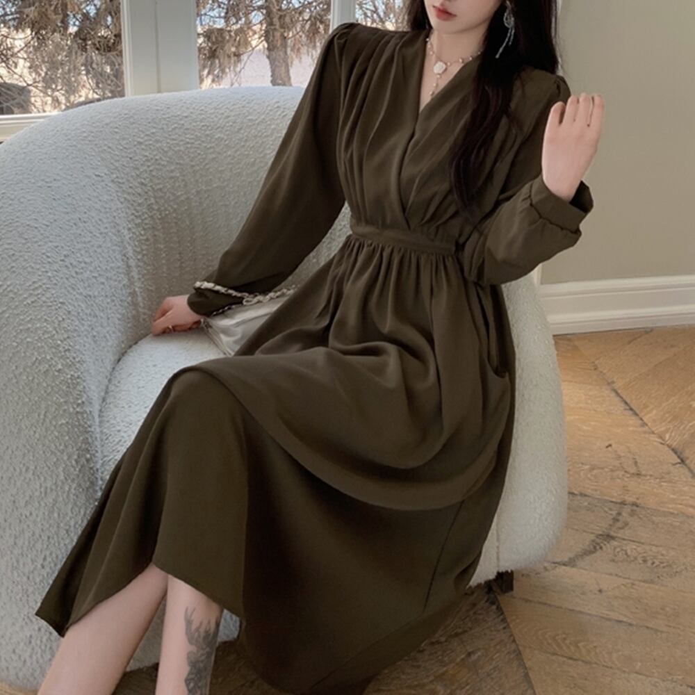 【 送料無料 】 Vネック 長袖 細見え ロング スカート ドレス ワンピース 秋 冬 レディース 大きいサイズの店 安い 海外 店舗 4xl 黒 きれいめ コーデ 秋冬 タイト 可愛い セット セットアップ 重ね着 10l 9l 8l 7l 6l 5l 4l 3l M1643