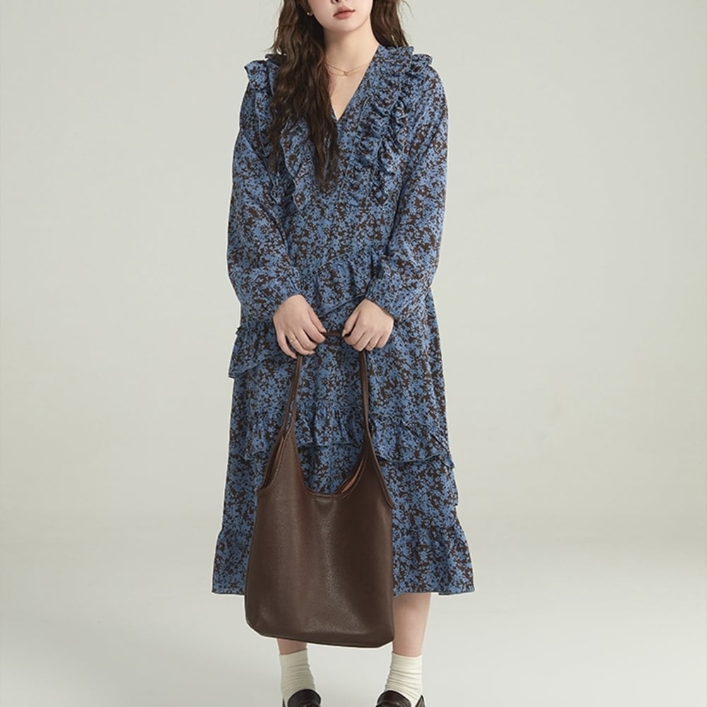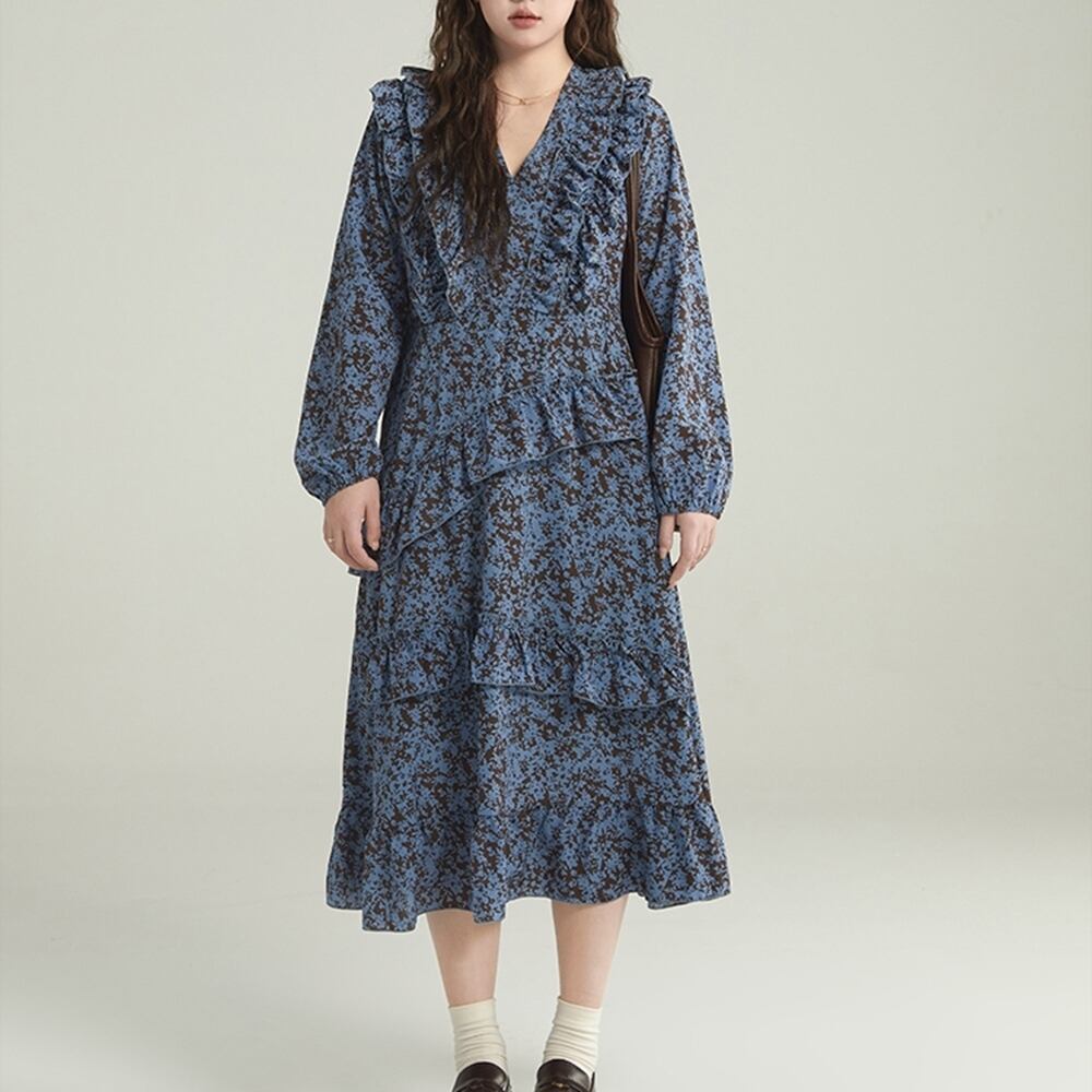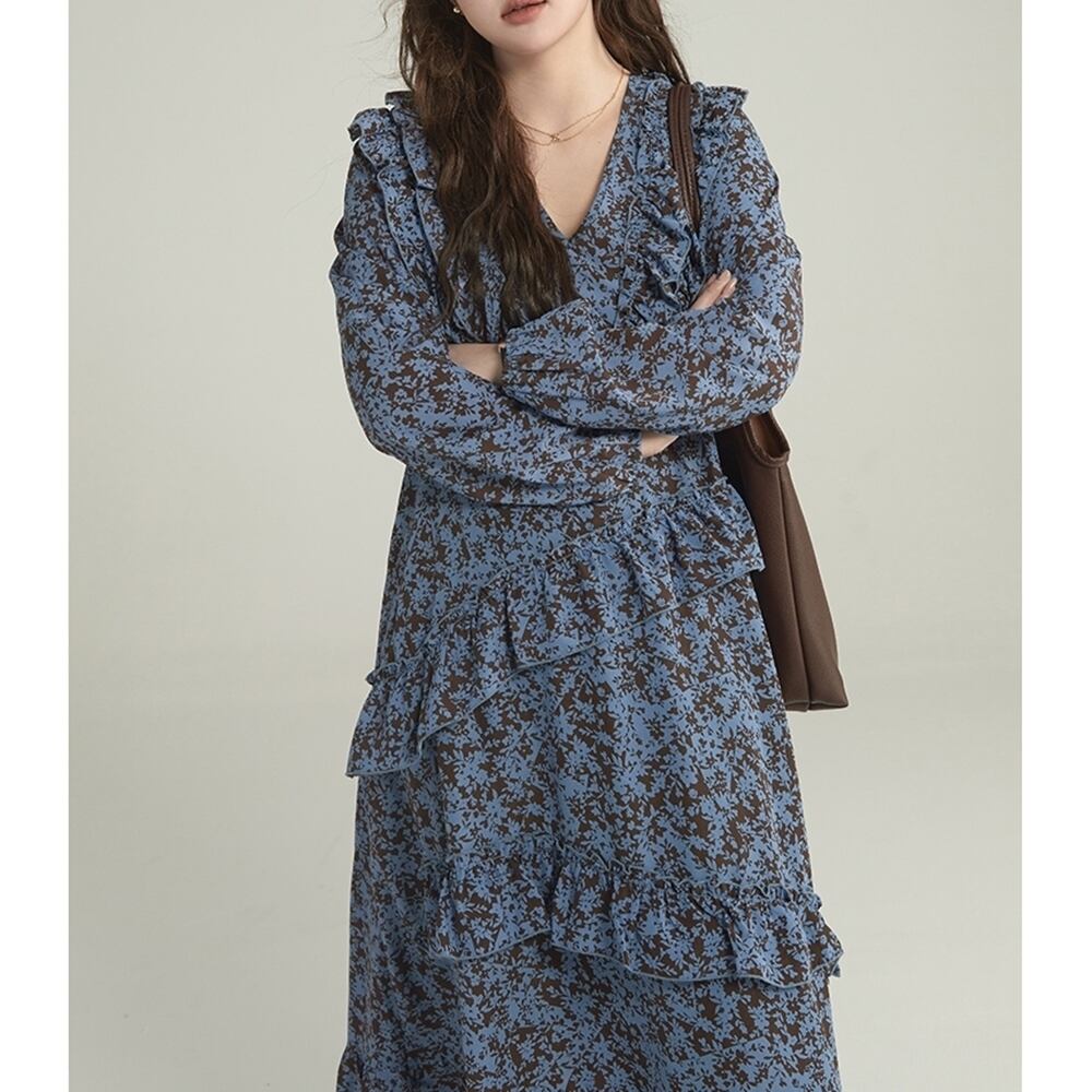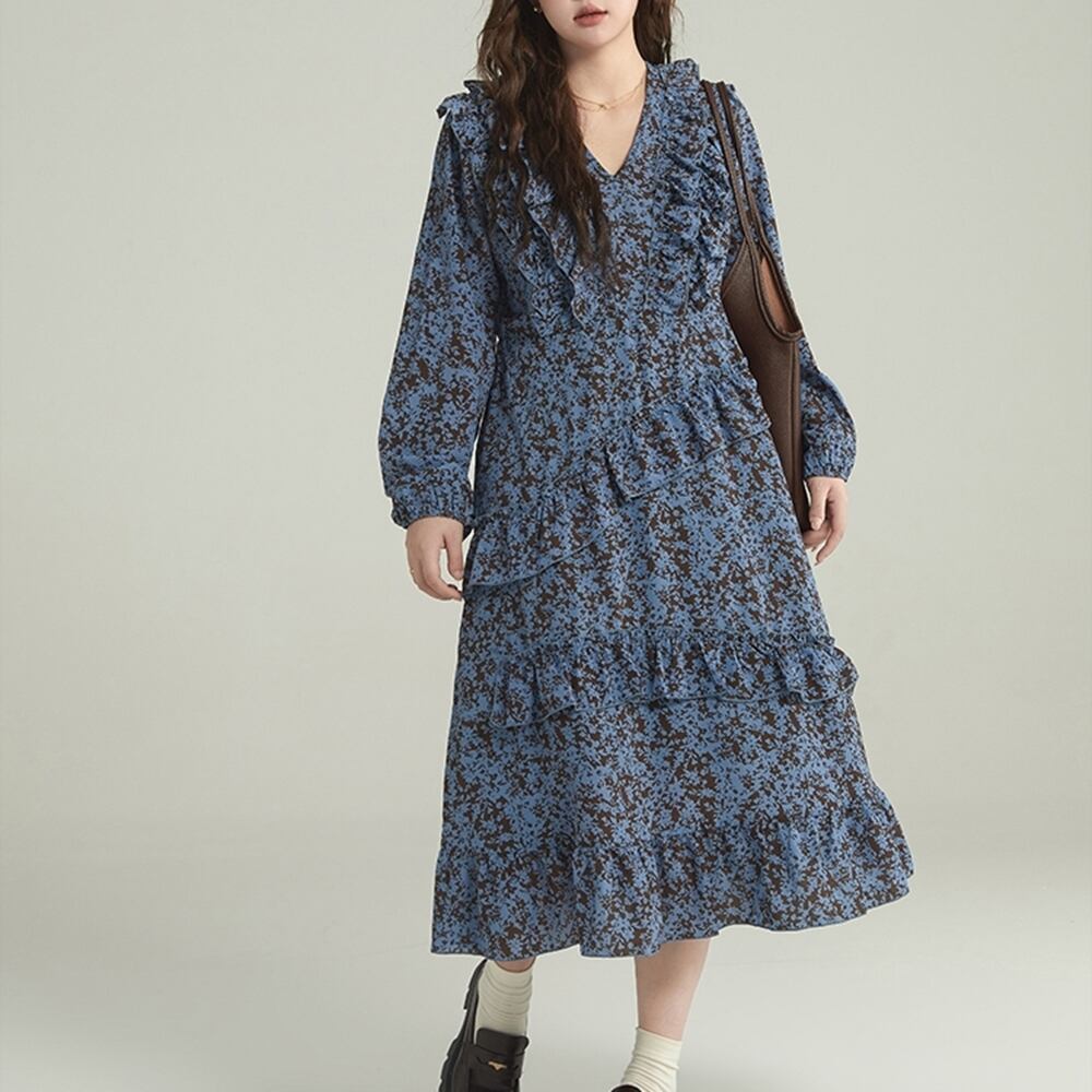 【 送料無料 】 プラスサイズ Vネック 花柄 フリル スカート カジュアル ドレス ワンピース レディース 大きいサイズの店 大きいサイズ 安い 海外 店舗 4xl お呼ばれ 大人っぽい 長袖 ロング 大人 可愛い 膝丈 セットアップ 10l 9l 8l 7l 6l 5l 4l 3l M1660