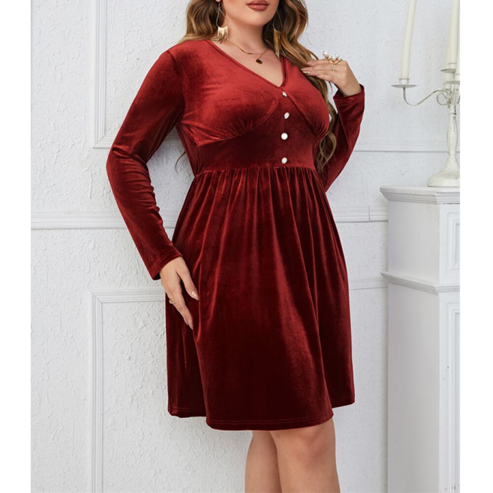 【 送料無料 】 Vネック 長袖 ボタン プリーツ スカート カジュアル ドレス ワンピース 秋 冬 レディース 大きいサイズの店 大きいサイズ 安い 海外 店舗 4xl 結婚式 コーデ 10l 9l 8l 7l 6l 5l 4l 3l M1666