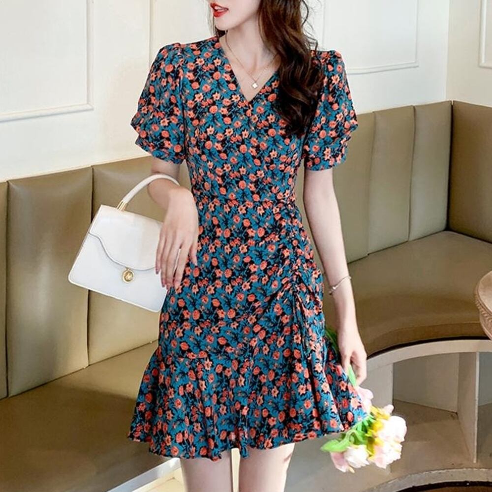 【 送料無料 】 花柄 半袖 スモール ウエスト カジュアル フローラル ドレス ワンピース レディース 大きいサイズの店 大きいサイズ 安い 海外 店舗 4xl 可愛い かわいい きれいめ 服 かっこいい オフィス 10l 9l 8l 7l 6l 5l 4l 3l M1689