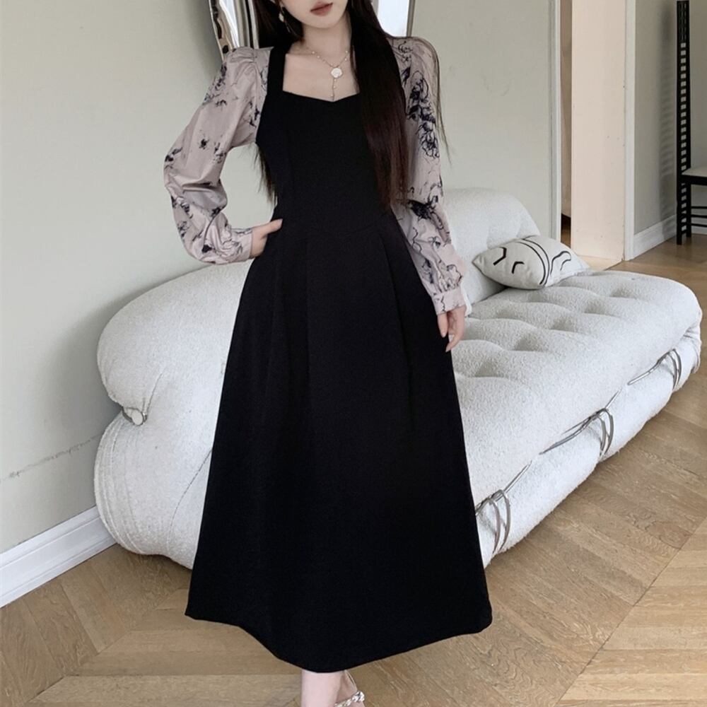 【 送料無料 】 花柄 長袖 ロング スカート ドレス ワンピース レディース 大きいサイズの店 大きいサイズ 安い 海外 店舗 4xl 春 秋 黒 ブラック タイト 可愛い かわいい タイト コーデ 10l 9l 8l 7l 6l 5l 4l 3l M1698