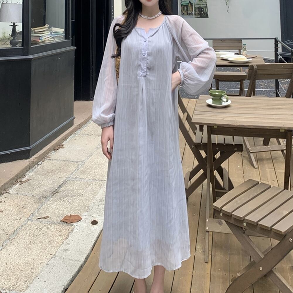 【M~4XL】 プラスサイズ ハーフオープン Aライン ロング ドレス