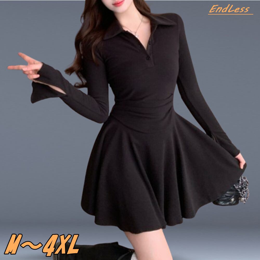 【M~4XL】 プラスサイズ 長袖 Aライン セクシーなショートスカートドレス