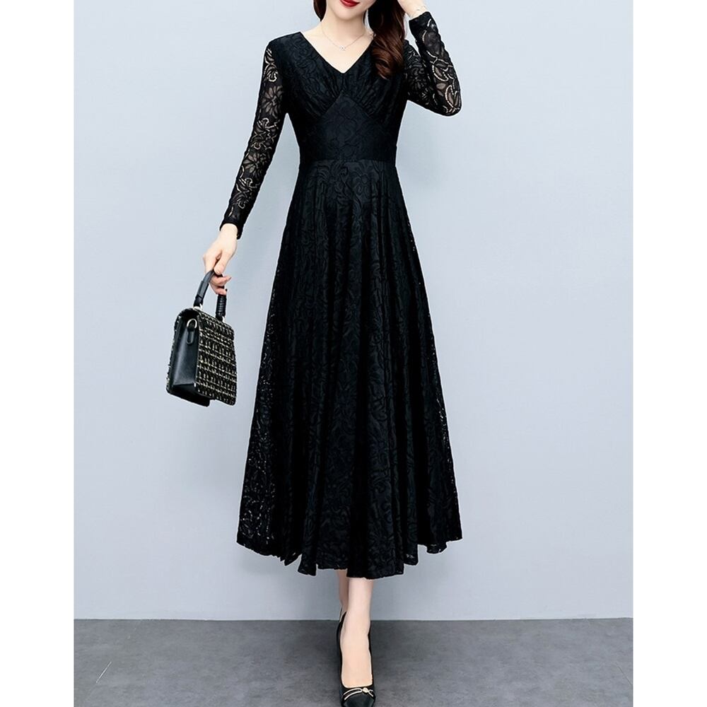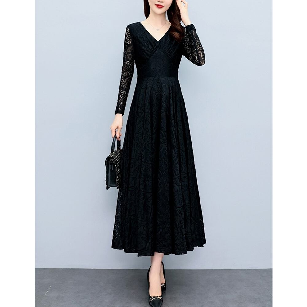 【 送料無料 】 ブラック レース 長袖 ロングスカート ドレス ドレス ワンピース レディース 大きいサイズの店 大きいサイズ 安い 海外 店舗 4xl 春 秋 黒 ブラック フォーマル パーティー 10l 9l 8l 7l 6l 5l 4l 3l M1701