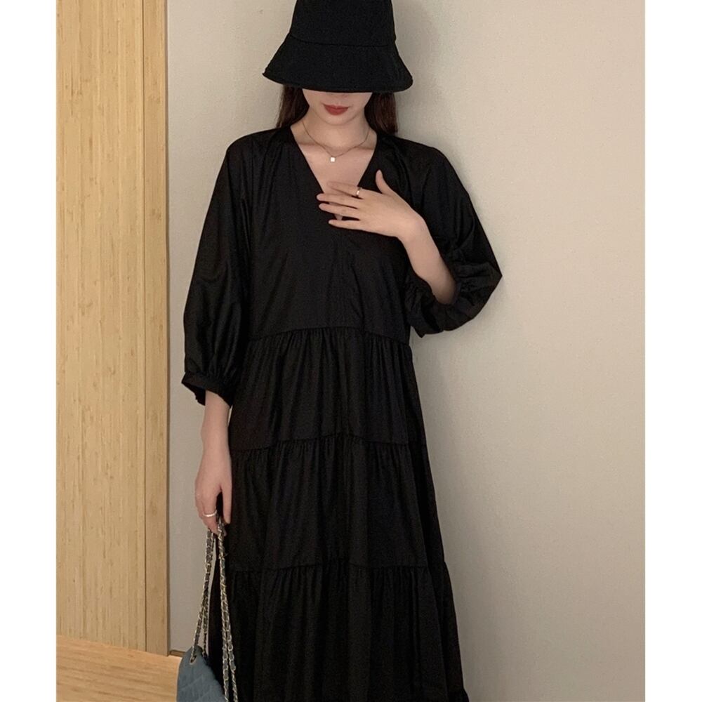 【 送料無料 】 ラグランスリーブ Vネック 長袖 ロング フリル スカート ワンピース レディース 大きいサイズの店 大きいサイズ 安い 海外 店舗 4xl 春 夏 黒 ブラック ランタンスリーブ きれいめ 可愛い コーデ 服 アウター 10l 9l 8l 7l 6l 5l 4l 3l M1702