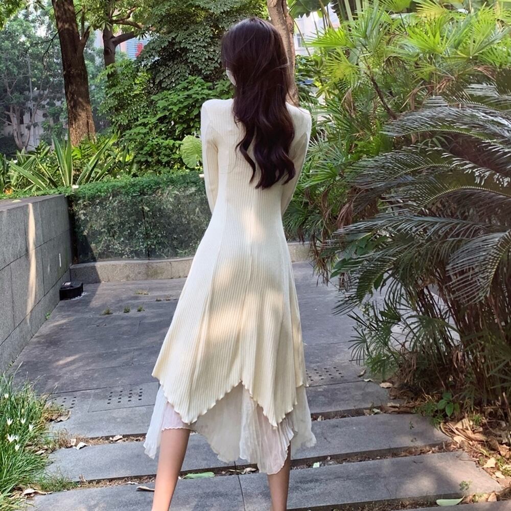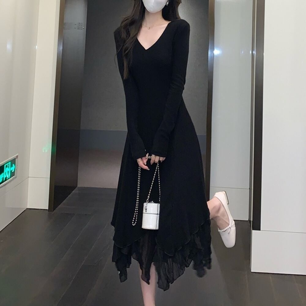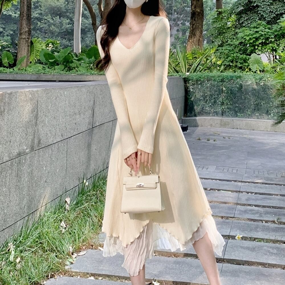 【 送料無料 】 ゆったり 不規則ロング スカート ニット 長袖 ワンピ ゆったり フリル カジュアル ワンピース アプリコット ブラック ベージュ 春 秋 レディース 大きいサイズの店 大きいサイズ 安い 海外 店舗 4xl 10l 9l 8l 7l 6l 5l 4l 3l 20代 30代 40代 M1704