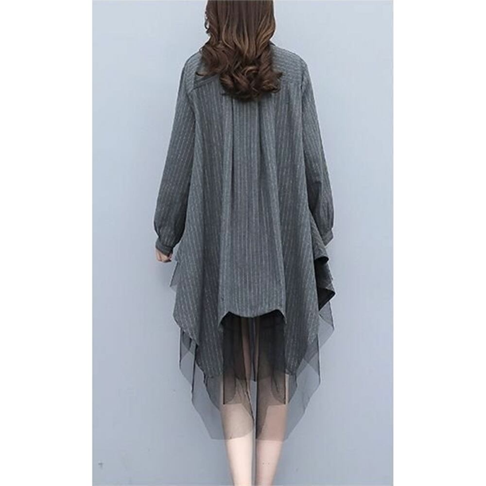 【 送料無料 】 ストライプ ミッドレングス メッシュ シャツ ドレス ワンピース グレー ブラウン 春 秋 レディース 大きいサイズの店 大きいサイズ 安い 海外 店舗 4xl かわいい 可愛い 結婚式 きれいめ 10l 9l 8l 7l 6l 5l 4l 3l 20代 30代 40代 M1710