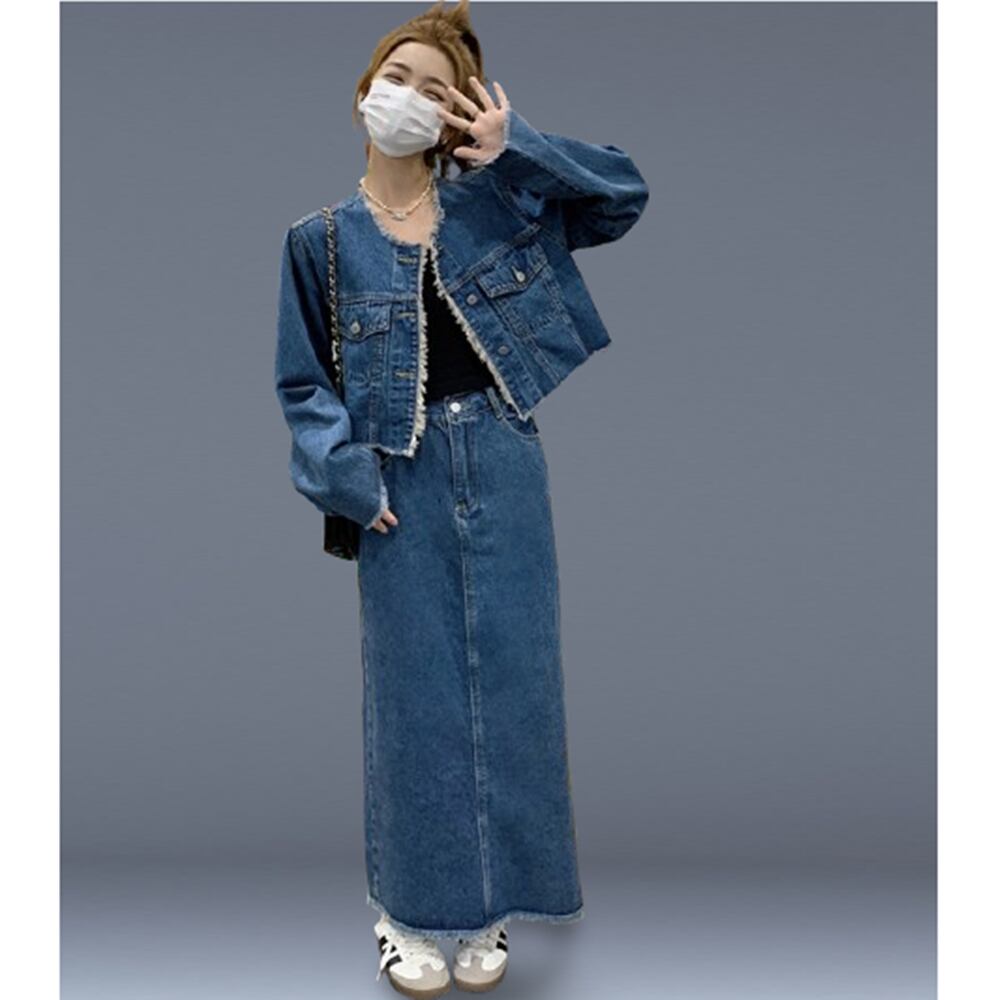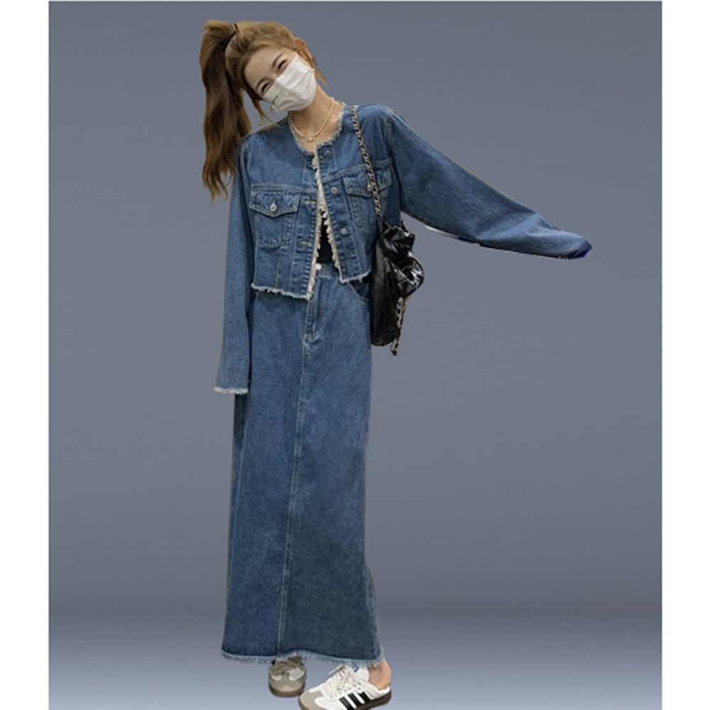 【 送料無料 】 デニム コート + スカート 2ピースセット ブルー 春 秋 レディース 大きいサイズの店 大きいサイズ 安い 海外 店舗 4xl ジャケット セットアップ ストレート かわいい 可愛い コーデ 10l 9l 8l 7l 6l 5l 4l 3l 20代 30代 40代 M1713